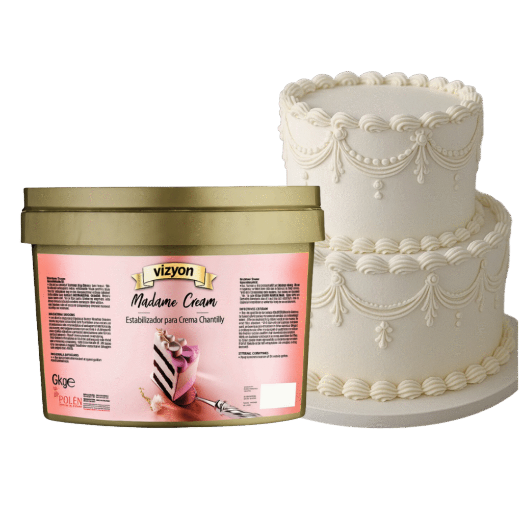 Madame Cream es un estabilizante europeo que aporta firmeza, estabilidad y textura sedosa a chantillí, cremas pasteleras y merengue italiano.